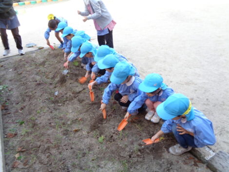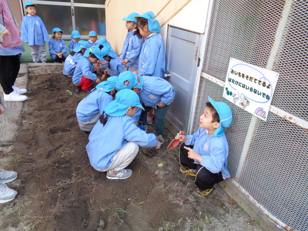春に年長さんに植えてもらったサツマイモを掘ってみました。あまりできがよくないかと心配しましたが、結構たくさん出てきました。来週やきいもにしてみんなで食べたいと思います。
