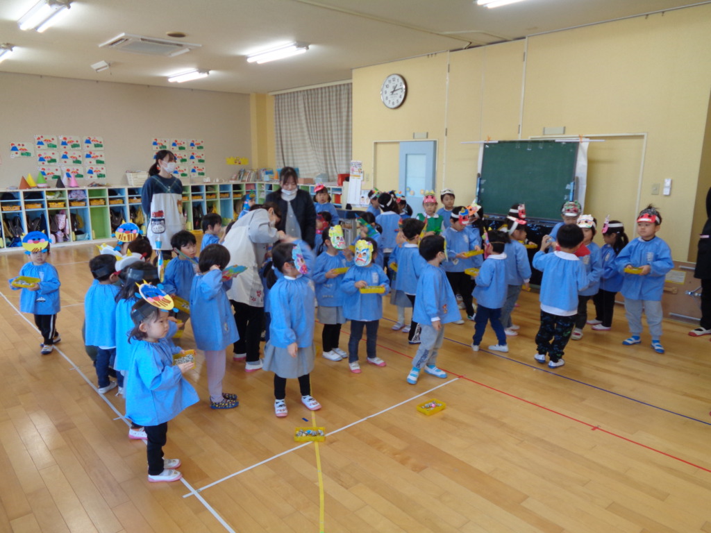 今日は節分、まめまきをしました。自分の中の悪いを鬼を追い出し、幸せがやってくるようにお願いしました。